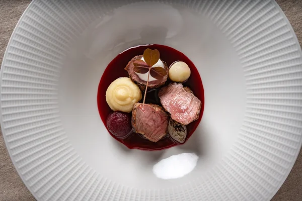 Lamb tenderloin with beet and lingonberry redwine sauce,